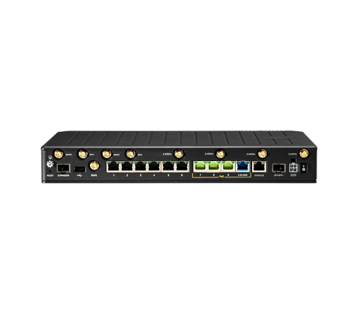The Ericsson Cradlepoint E3000 Series is a high-performance 5G SD-WAN and security appliance built for medium branch offices, hybrid WAN sites, retail, healthcare, and financial services requiring robust security, analytics, and resilient connectivity. It features embedded 5G NR (NSA/SA) or Cat 20/Cat 18 LTE with dual-modem support for failsafe wireless, dual-band concurrent Wi-Fi 6 (802.11ax), 9x GbE + 1x 2.5 GbE + 1x SFP+ Ethernet ports (LAN/WAN switchable), PoE support, and Bluetooth expansion capability.